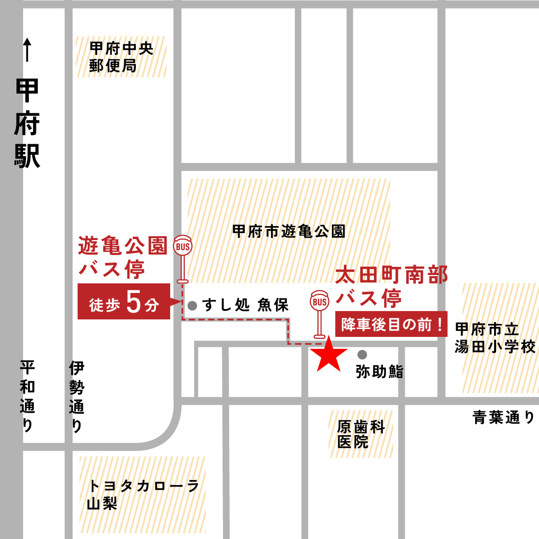 ※【 10 】南甲府経由伊勢町営業所行きは太田町南部に停車します。